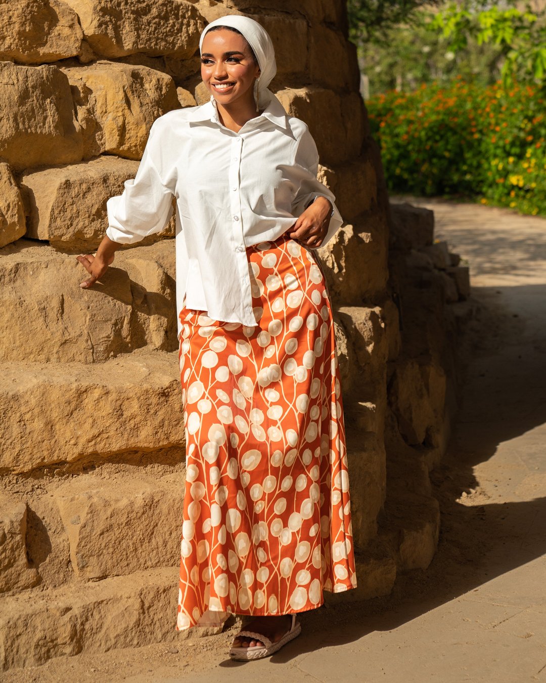 Long High-rise skirt with a bias cut design and a side zip fly.