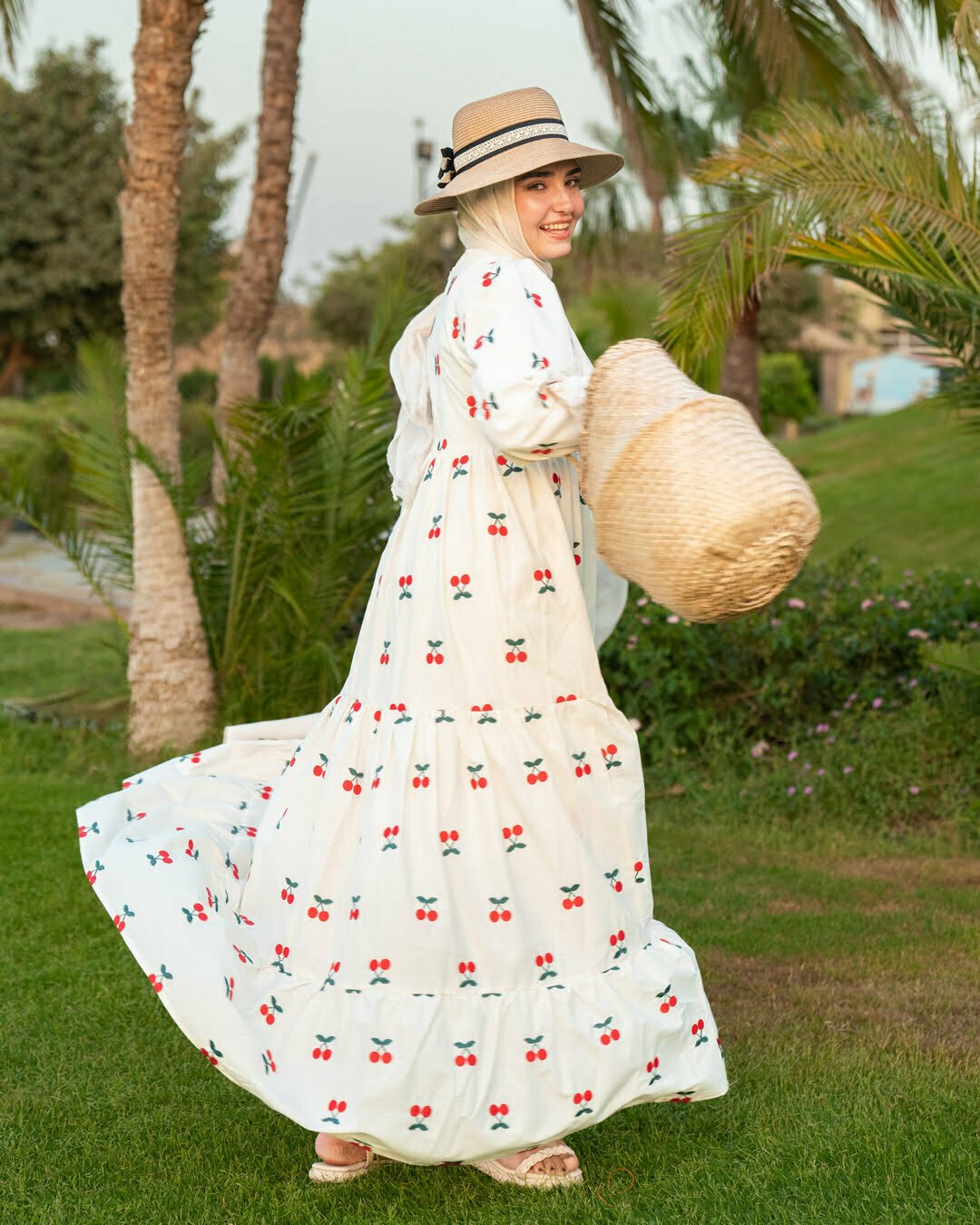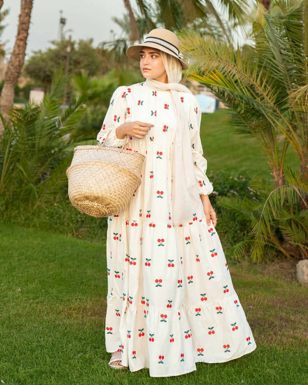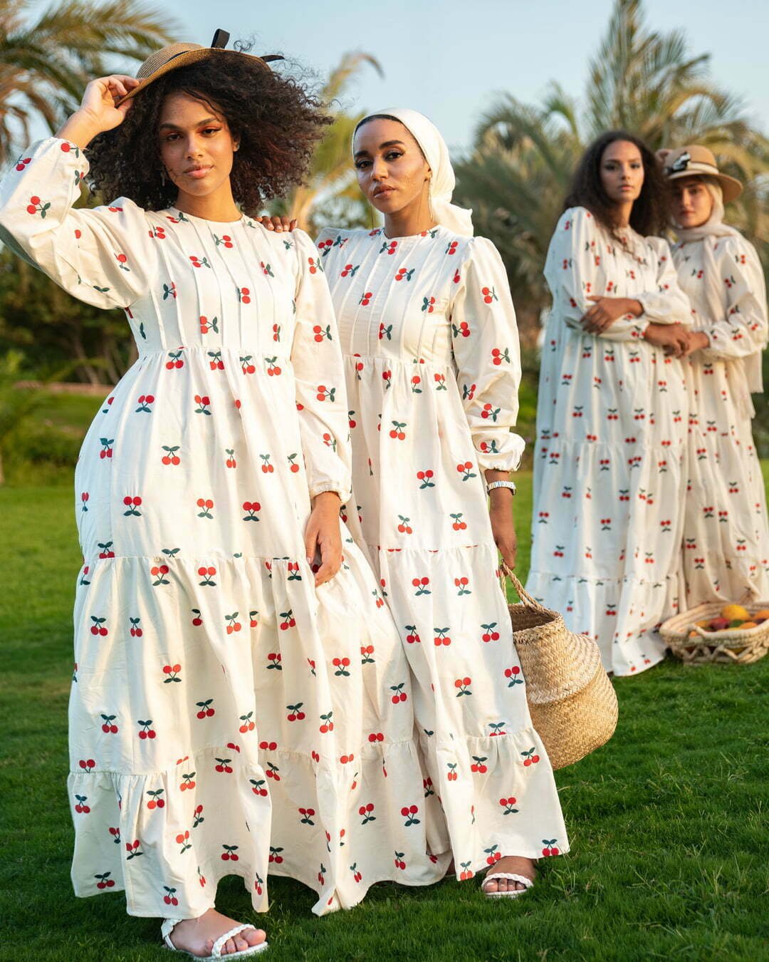 Made from pure premium cotton and lined with skin-friendly non-transparent material, you can wear it without any layering. Long dress. Embroidered with red cherries.