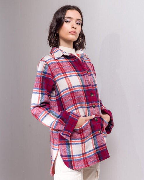 Red wool shirt jacket
